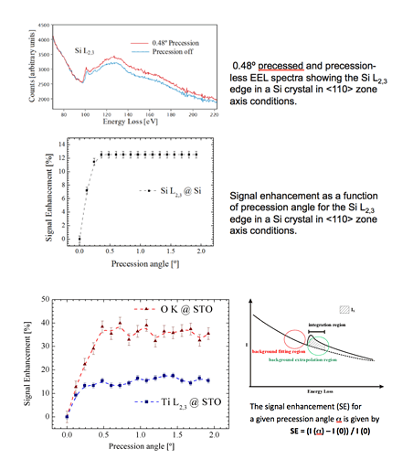 Click here for proof of concept outlined by S. Estradé, et al., EELS signal enhancement by means of beam precession in the TEM, Ultramicroscopy (2012)